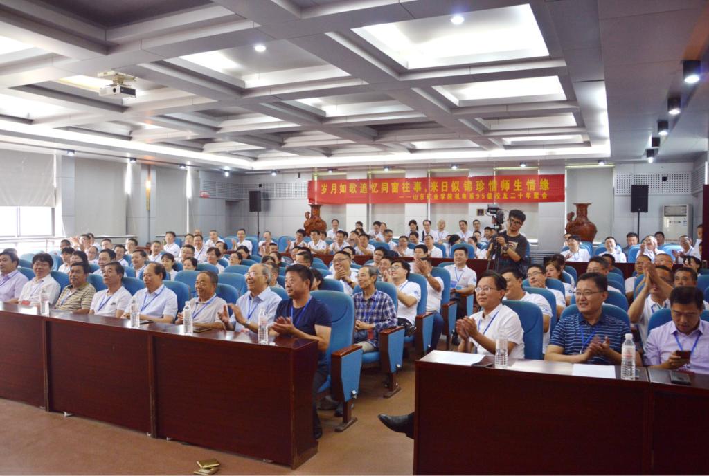 座谈会上,大家一起观看了第一版主 宣传片和95级校友毕业20周年专题纪录片,师生们感慨万千,老照片展播,更是触碰着校友们心灵深处的记忆,高潮不断,掌声不断,笑声不断。随后,韩宝坤致辞,对校友们毕业20年后荣归母校表示热烈欢迎,他向校友们介绍了学院发展情况,感谢校友们对学院发展做出的贡献,希望每位校友继续奋发图强,做出更好的业绩,并经常回母校看看。校友代表姜殿昌、傅源方、白明、胡言和、李志刚先后发言,与大家分享了自己毕业20年来的工作发展和生活情况,回顾了昔日温暖而又美好的校园生活并表达了对老师悉心教导和无私关怀的感激之情。教师代表王开柱、王素玉发表了热情洋溢的讲话, 以及刘桦老师的遥祝之辞,大家共同回忆师生情,共谋未来发展路。同时,95级校友向学院赠送了纪念品,学院为校友们赠送了第一版主 纪念品,会后全体师生一起在泰山广场合影留念。在校期间,95级校友还分专业举办了校友座谈会活动。
