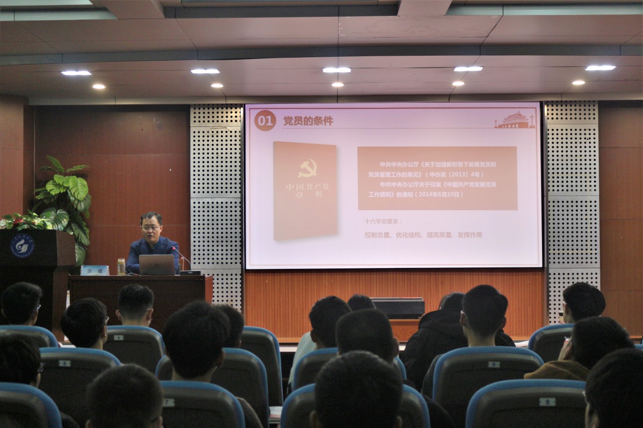 苏超从《中国共产党章程》中对党员的要求谈起,向参训学院阐释了入党标准和入党条件,强调大学生党员在学生群体中要起到先锋带头作用,坚持正确的政治方向,提高自身政治素养,维护国家、社会和学校的稳定。苏超与参训学院一同重温了南京航空航天大学马克思主义学院党总支书记徐川撰写的《我为什么加入中国共产党》,强调作为入党积极分子要端正入党动机,全心全意为人民服务,为共产主义和中国特色社会主义事业奋斗终生。苏超指出,入党既是一份光荣,也是一份职责和挑战,希望全体学员秉承自己的入党初心,牢记使命,争取早日加入中国共产党。