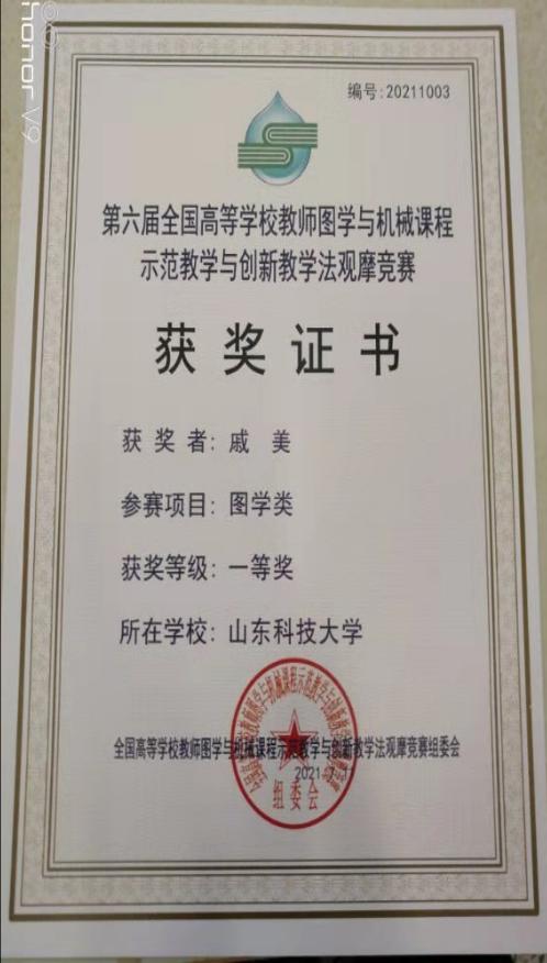 点击:2021年7月9日-11日,第六届全国高等学校教师图学与机械课程示范教学与创新教学法观摩竞赛在南通大学举行。第一版主 戚美教授参加了此次比赛,其丰富的教学内容、灵活的教学方法、扎实的教学基本功及优秀的课件制作得到专家和评委的肯定,获得图学类全国一等奖(第3名),充分展现了我校教师热爱教学、勇于创新的风采,为学校争得了荣誉。