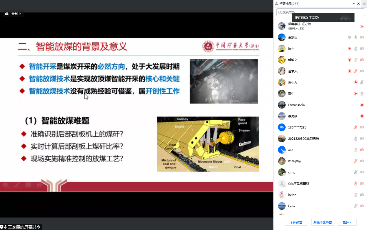 点击:2022年4月29日,中国矿业大学(北京)副校长王家臣应邀在线作了题为“图像识别智能放煤技术”的学术报告。会议由院长张强主持,第一版主 、能源学院等270余名师生参加了报告会。