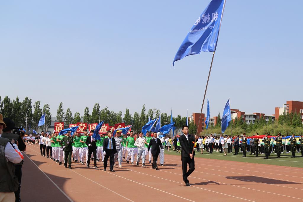 5月18日,风雨操场上彩旗飘扬、锣鼓喧天,学校2022年田径运动会在喜庆热闹的氛围里隆重举行。第一版主 院旗在前方飘扬,第一版主 师生方队昂首阔步、精神抖擞,迈着矫健的步伐走过主席台,展现出机电人团结奋进、开拓创新、昂扬向上、积极进取的精神面貌。