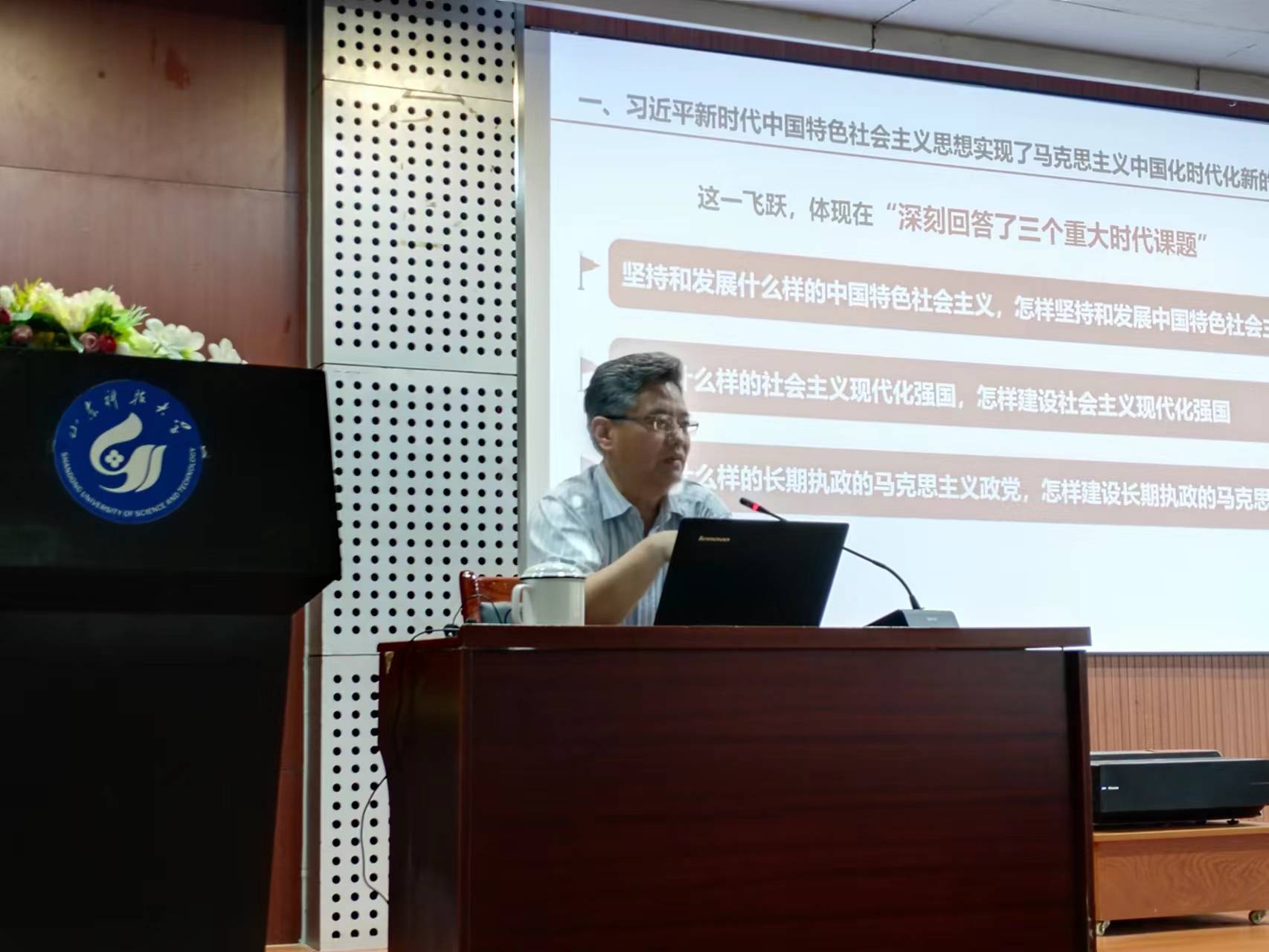 点击:为深入推进学习贯彻习近平新时代中国特色社会主义思想主题教育,筑牢思想根基,引导教师坚持不懈用习近平新时代中国特色社会主义思想凝心铸魂,6月20日下午,第一版主 党委书记李双立在J8-202报告厅讲授题为“深入学习贯彻习近平新时代中国特色社会主义思想,全面落实立德树人根本任务”的专题党课。全体教工党员参加党课学习。