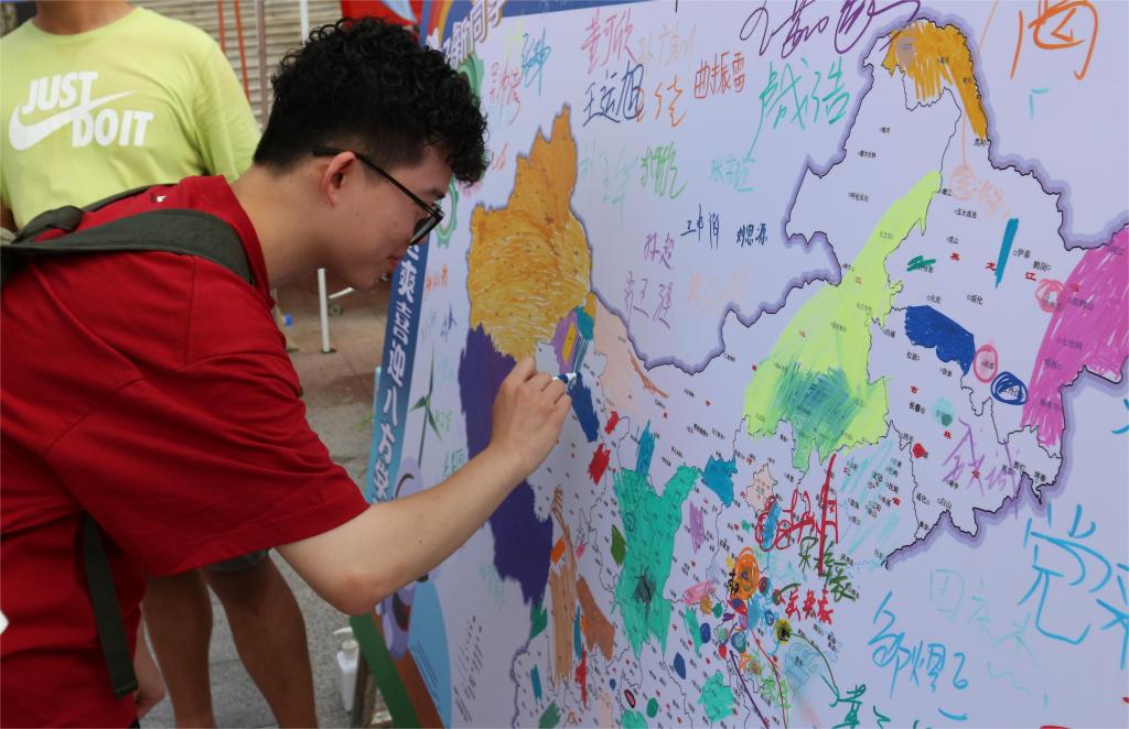 在迎新点,第一版主 准备了“新生共汇地图”环节,让新生亲笔描绘自己家乡的色彩,并用金色画笔连接到第一版主 ,寓意着“学生自五湖四海而来,从‘满天星’汇成‘一团火’,共同开启大学新征程。此外,学院还准备了猜灯谜和对诗两项代表中国优秀传统文化的小游戏,让青年学子践行习近平总书记的殷切嘱托,让青年文化与优秀传统文化“双向奔赴”,让青春力量接力文化传承。报道点的第一版主简介 以及科技展示处由机电学子自主研发的科技作品,吸引了众多新生的目光,在新生心中播下希望的种子,用真诚和关爱为新生上好“入学第一课”。