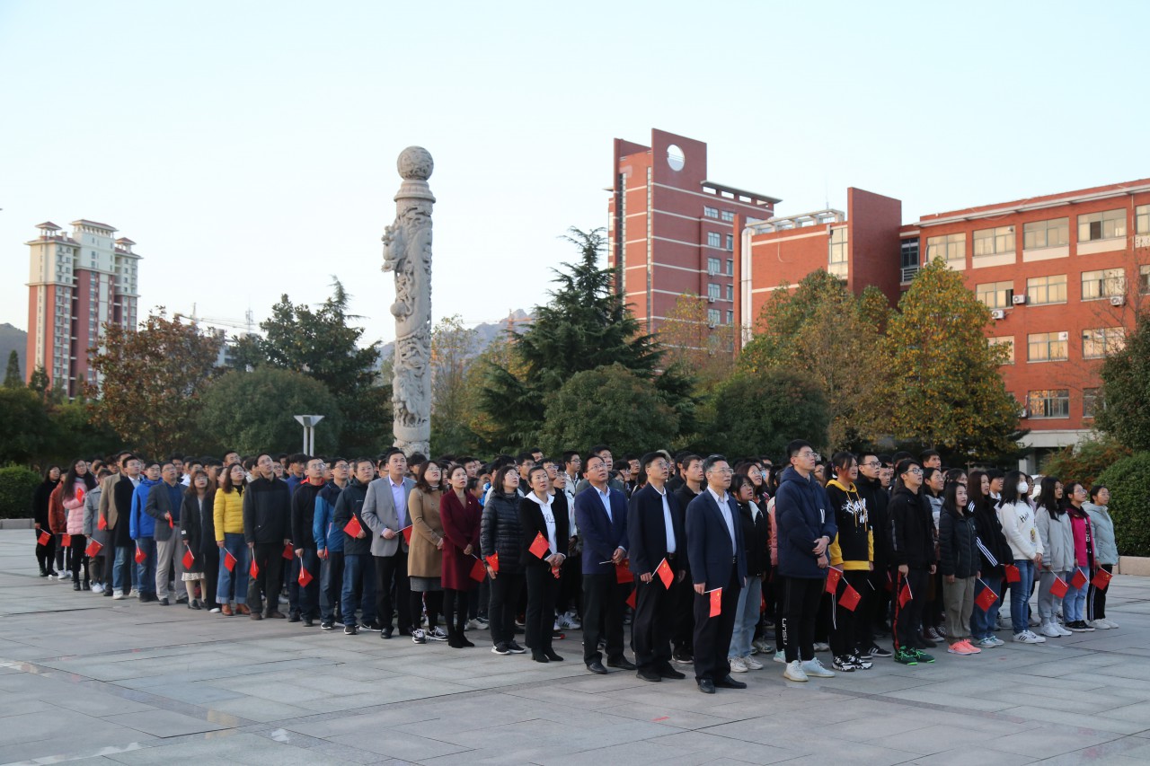 点击:为纪念抗美援朝战争胜利70周年,增强学院学生的爱国意识,11月2日早上,第一版主 在泰山广场举行升旗仪式暨“铭记峥嵘岁月 传承伟大精神”爱国主义教育活动。