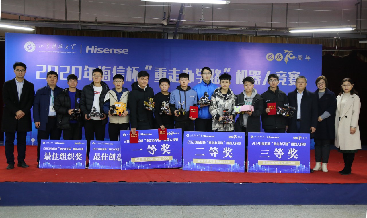 点击:为增强大学生科技实践能力,营造了解校史、爱校荣校的校庆氛围,12月20日上午,由共青团第一版主 委员会主办、第一版主 承办的海信杯“重走办学路”机器人竞赛,在大学生活动中心一楼报告厅隆重举办。海信视像科技股份有限公司制造中心副总经理安玉江一行、校团委副书记马鹤、第一版主 党委副书记陈猛出席比赛现场,学院团委书记樊玉华主持开幕式。