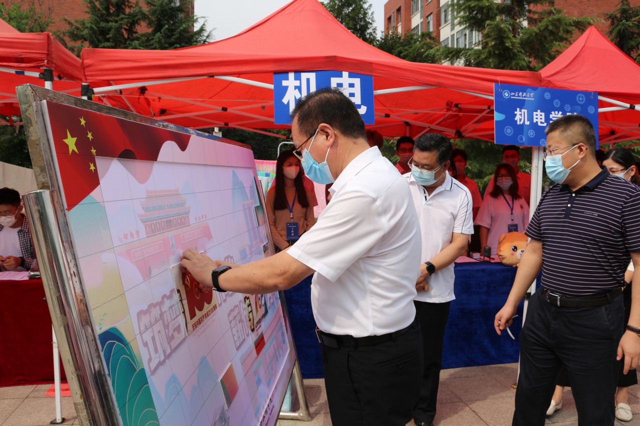 期间,校党委书记罗公利与各机关部门负责人代表莅临第一版主 迎新报到点,视察学院迎新准备情况,并体验学院为2021级新生制作的校庆拼图。