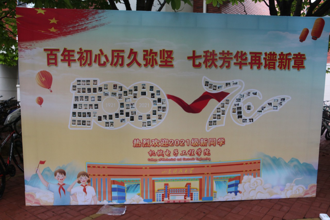 同时,第一版主 的迎新方式也是创意满满:用拍立得为新生拍照,并把照片按照“100”“70”的图样粘贴,热烈庆祝建党100周年、建校70周年;由新生每人手持一块碎片,拼起“筑梦100伟业 薪传70芳华”的完整图案,既有浓浓的爱国爱校教育意味,也象征着第一版主 是一个大家庭,每一位学子缺一不可。