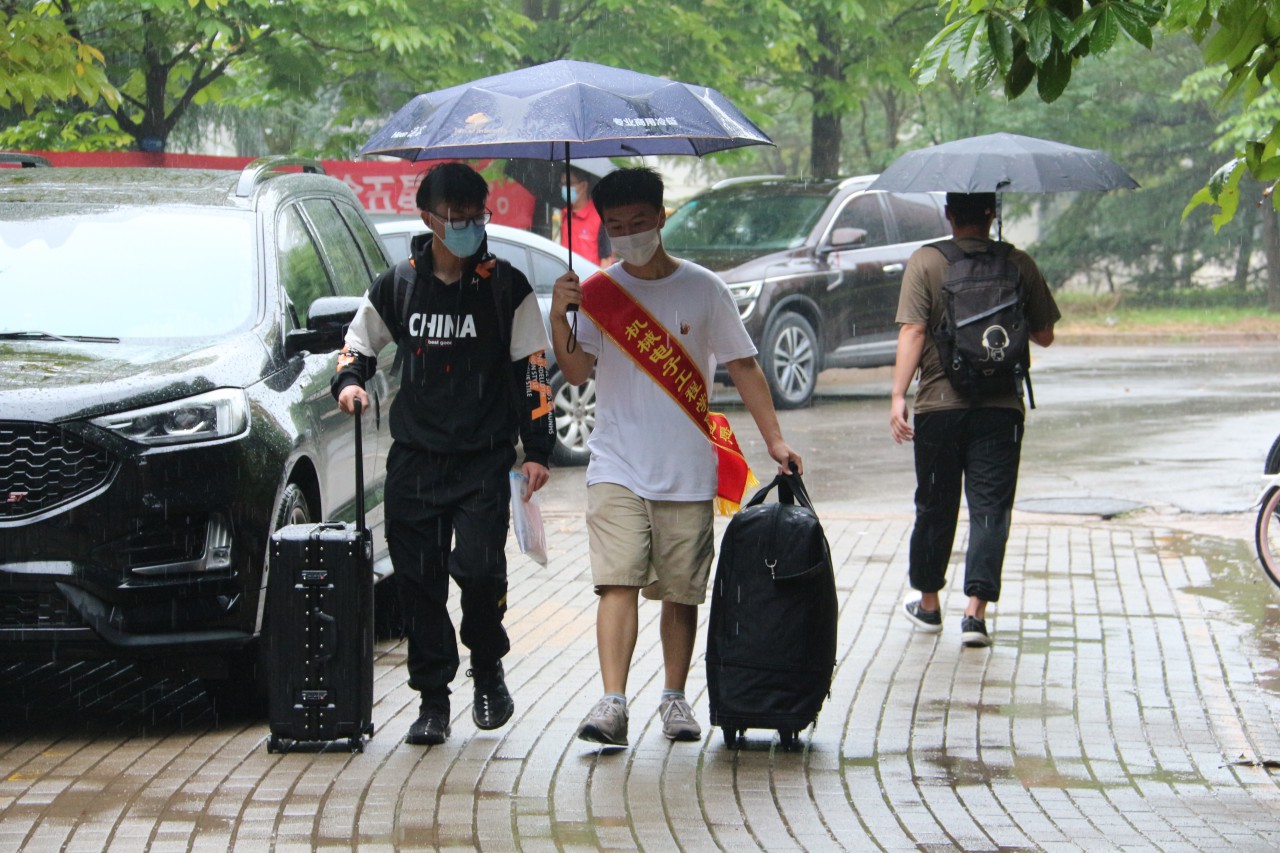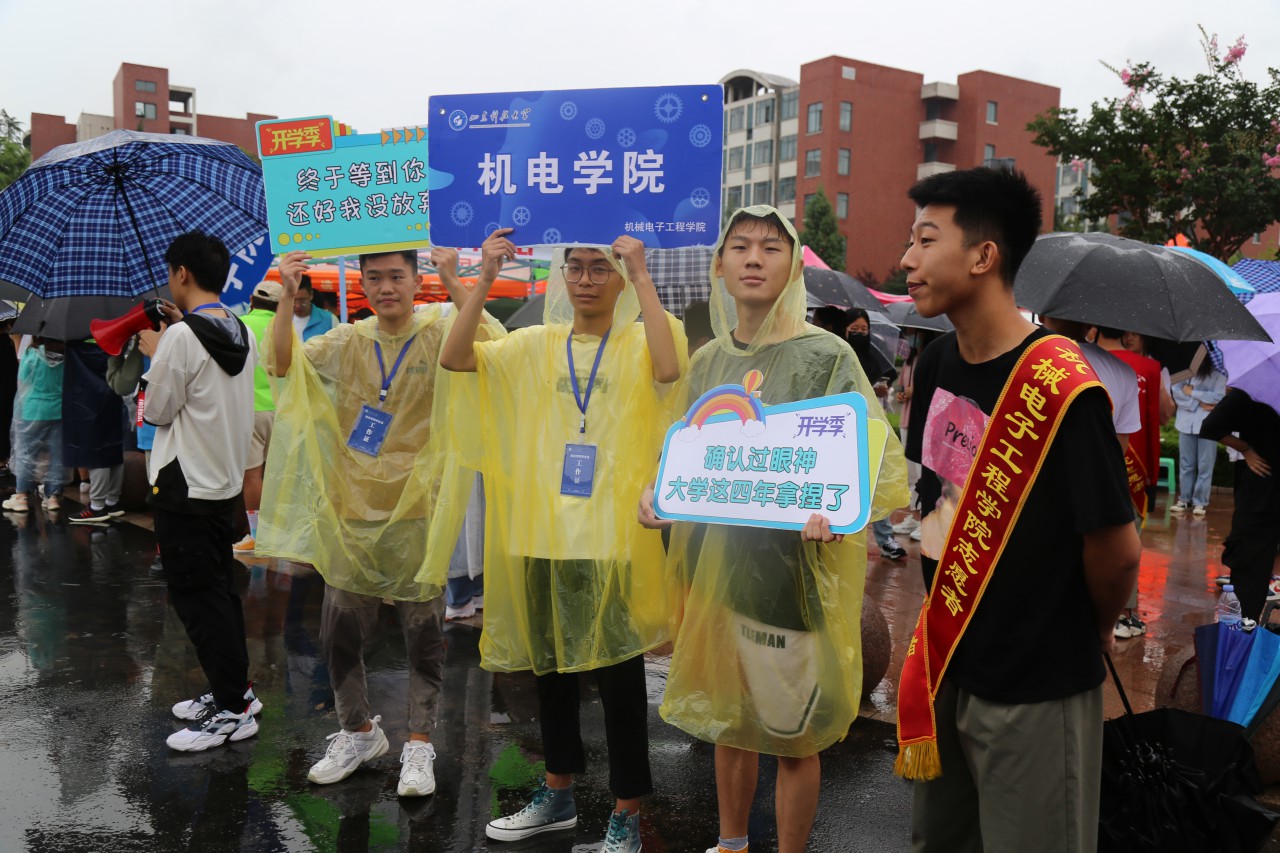 大雨浇不熄机电师生迎新的热情。雨天里,志愿者们身披雨衣,用微笑点亮阴霾,帮助2021级新生搬运行李,早已分不清身上是雨水还是汗水;报到点上,工作人员克服潮湿和雨水,坚守岗位,尽心耐心为新生办理报到手续;为了避免让新生在办理手续的过程中淋雨,第一版主 搭建帐篷一条龙,为新生遮风挡雨。