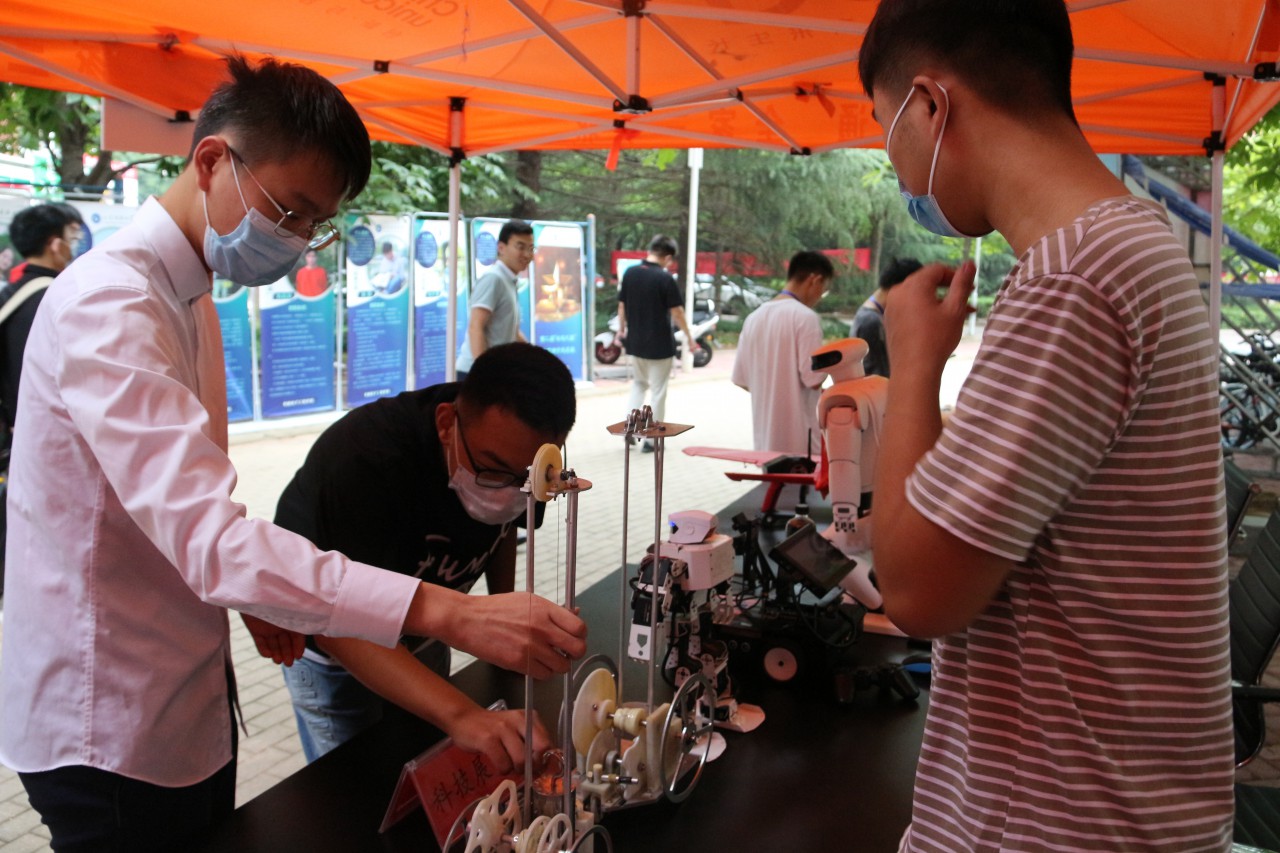 在迎新点,第一版主 设置了电子显示屏,展示近年来学生培养工作中的科技创新、社会实践、文艺体育等各项突出成绩;科技展示处,由第一版主 学子自主研发的机器人吸引了众多新生们的目光,它们向新生们展示自己的“技能”:后空翻,跳舞,仰卧起坐……充分展现了第一版主 的科创精神;优秀学子展示牌上陈列了近年来在学习、创新创业、社会实践等众多优秀机电学子的事迹介绍,为新生树立了发展榜样。
