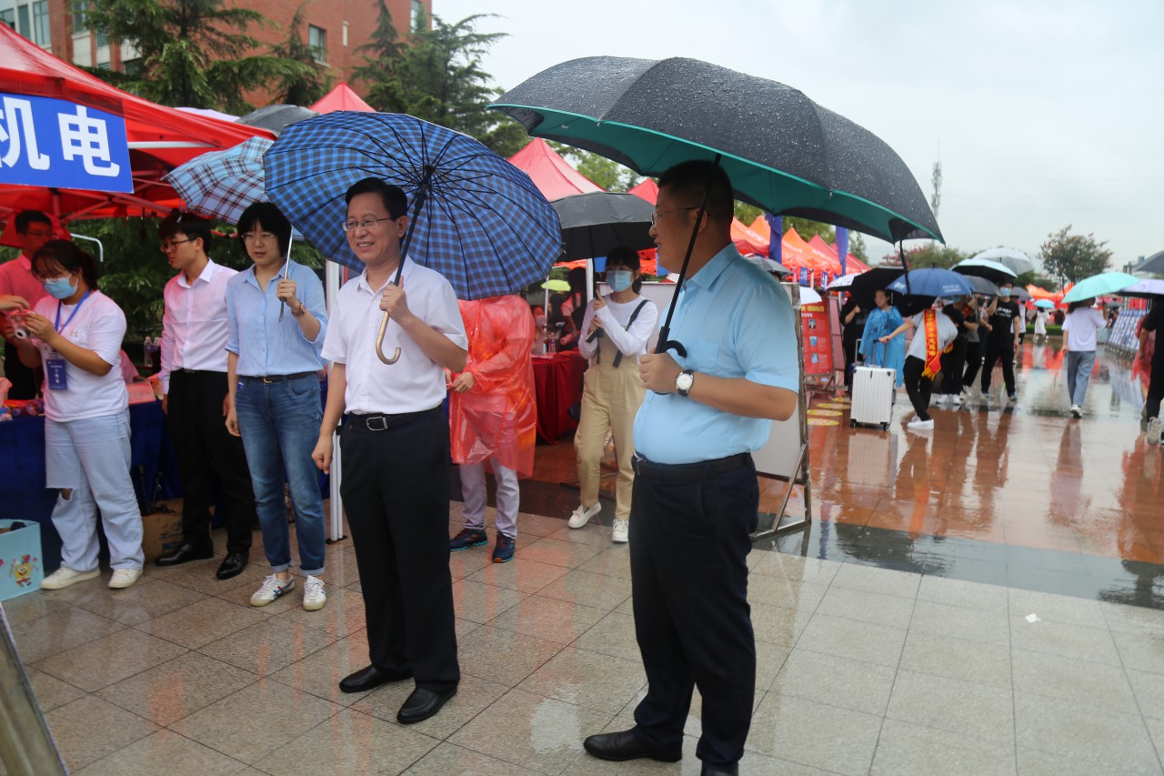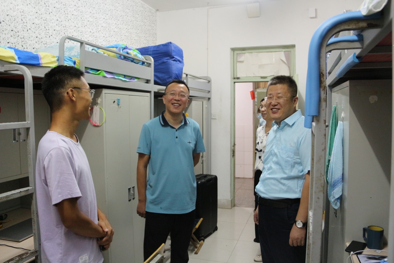 学院领导十分关心新生返校服务工作,第一版主 党委书记韩宝坤、院长张强、党委副书记陈猛来到迎新点检查迎新工作,走入宿舍亲切问候学子。