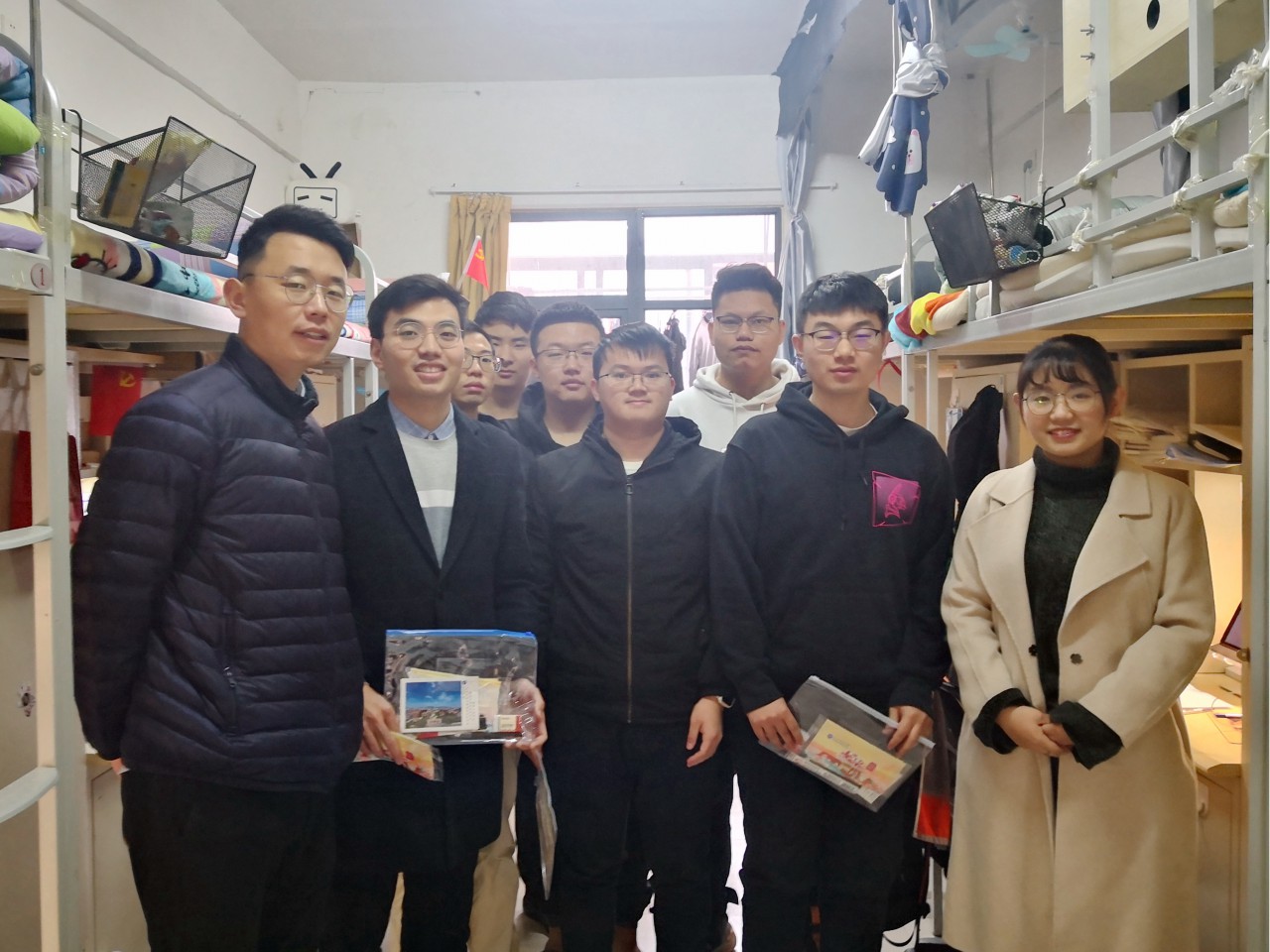 陈猛与备考的同学们亲切交谈,询问备考情况和学习状态,希望他们坚定信念,努力奋斗,坚持到底,同时勉励同学们在最后的冲刺期要调整好心态,劳逸结合。随后,领导老师们为考研学子送上了精心准备的“考研祝福大礼包”。