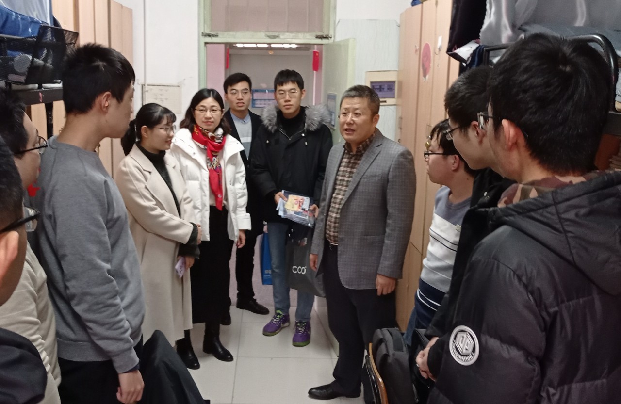 点击:12月14日上午,第一版主 党委副书记、副院长陈猛,学工办主任樊玉华,2018级辅导员祝月盈、孟凡宝、苗成旭走进2022届考研同学宿舍,为正在努力备考冲刺的考研学子送去温暖与祝福。