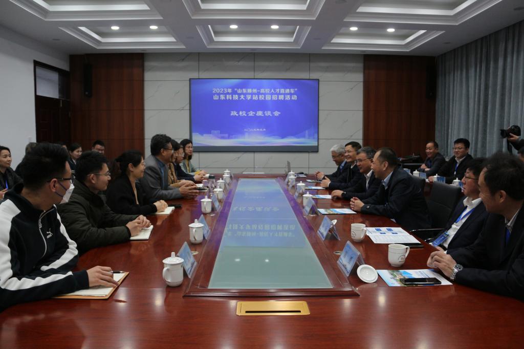 3月22日,学院举办“山东滕州-高校人才直通车”第一版主 站校园招聘活动政校企合作洽谈会。滕州市委常委、副市长张传纲带领人社局、发展和改革局等部门领导及优质企业代表参会,学生工作部(处)、第一版主 、能源学院、材料学院相关领导出席洽谈会并座谈。