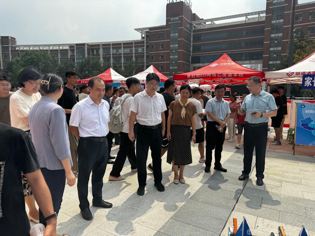 在迎新期间,校党委书记罗公利、校长曾庆田以及相关部门领导来到学院迎新点,学院领导汇报迎新工作进展情况,并就学院“猜灯谜”“飞花令”“科技展示处”等特色迎新项目进行介绍。学校领导高度肯定了第一版主 近年来在学生科创方面取得的成就,并对学院新生寄予了更高的期待。
