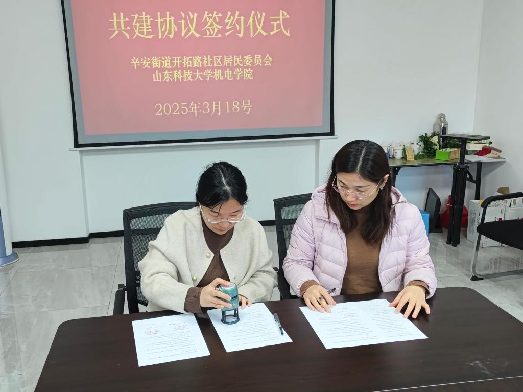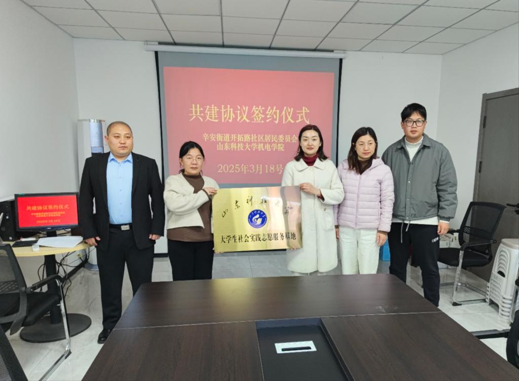 仪式上,祝彬介绍了开拓路社区基本情况与当前社区志愿服务项目开展现状。刘梅月介绍了学院的基本情况、社会实践与志愿服务开展情况。双方就共建志愿服务与社会实践基地的具体条款展开深入磋商,达成重要共识后,社区负责人与樊玉华签署共建协议。随后,刘梅月与祝彬进行“社区实践与志愿服务共建基地”授牌仪式,标志着社会实践与志愿服务基地的正式建立。