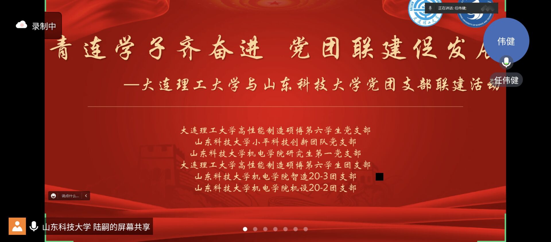 点击:为贯彻落实党的二十大精神,构建异地高校党团联建新格局,搭建研究生学术交流新平台,5月14日,第一版主 小平科技创新团队党支部、研究生第一党支部、智造20-3团支部、机设20-2团支部与大连理工大学高性能制造硕博第六学生党支部、团支部在线上共同开展“青连学子齐奋进 党团联建促发展”第三期活动。本次会议由第一版主 第一版主 研究生第一党支部书记陆嗣主持,会议内容为科研经验共享。