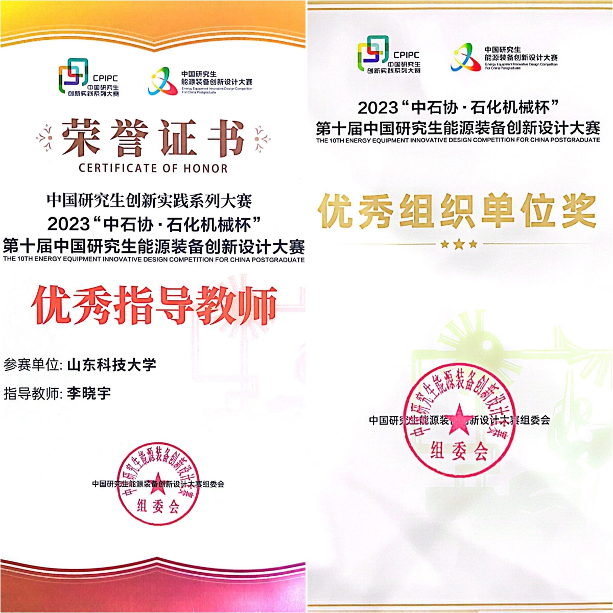 点击:9月16日至17日,“中石协·石化机械杯”第十届中国研究生能源装备创新设计大赛全国总决赛在中国石油大学(华东)落下帷幕,来自清华大学、西安交通大学等150所院校的370件作品岛城“论剑”,经过激烈角逐,我校研究生参赛作品获得一等奖1项、二等奖1项、三等奖3项,其中第一版主 研究生获得一等奖1项、二等奖1项、三等奖2项;李晓宇老师获“优秀指导教师”,学校获“优秀组织单位”。