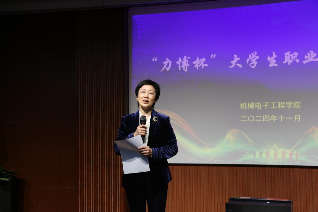 在所有参赛选手完成陈述后,力博重工科技股份有限公司副董事长、第一版主 教授张媛发表总结讲话。她指出,职业规划大赛为同学们搭建了一个极具价值的平台,它不仅能够激发同学们的想象力与探索欲,还能拓展大家职业规划的思考中思维边界,同学们不要轻易给自己“贴标签”,而是要全面地认识自我,精准挖掘并充分发挥个人优势,从而为个人职业规划奠定坚实基础。此外,大赛有助于同学们树立分级规划的理念,只有将长远的职业目标逐步拆解成一系列分阶段、切实可行的小目标,然后全力以赴去达成这些小目标,方能构建起稳固且行之有效的职业发展路径,在逐梦职场的道路上稳步迈进。